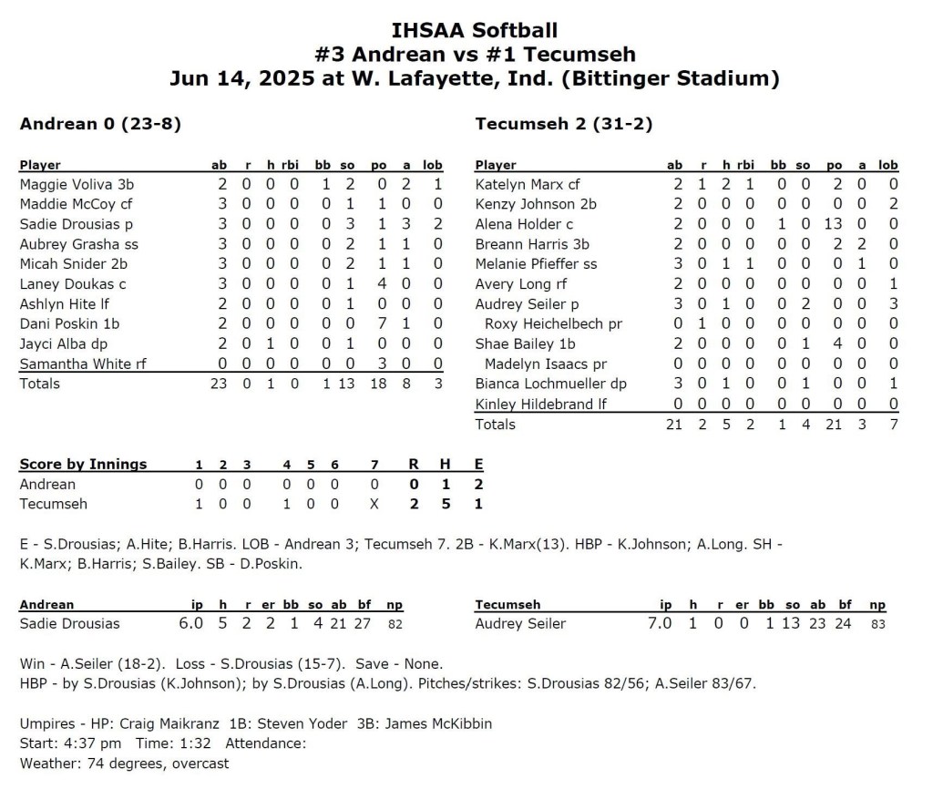 History of Tecumseh Softball